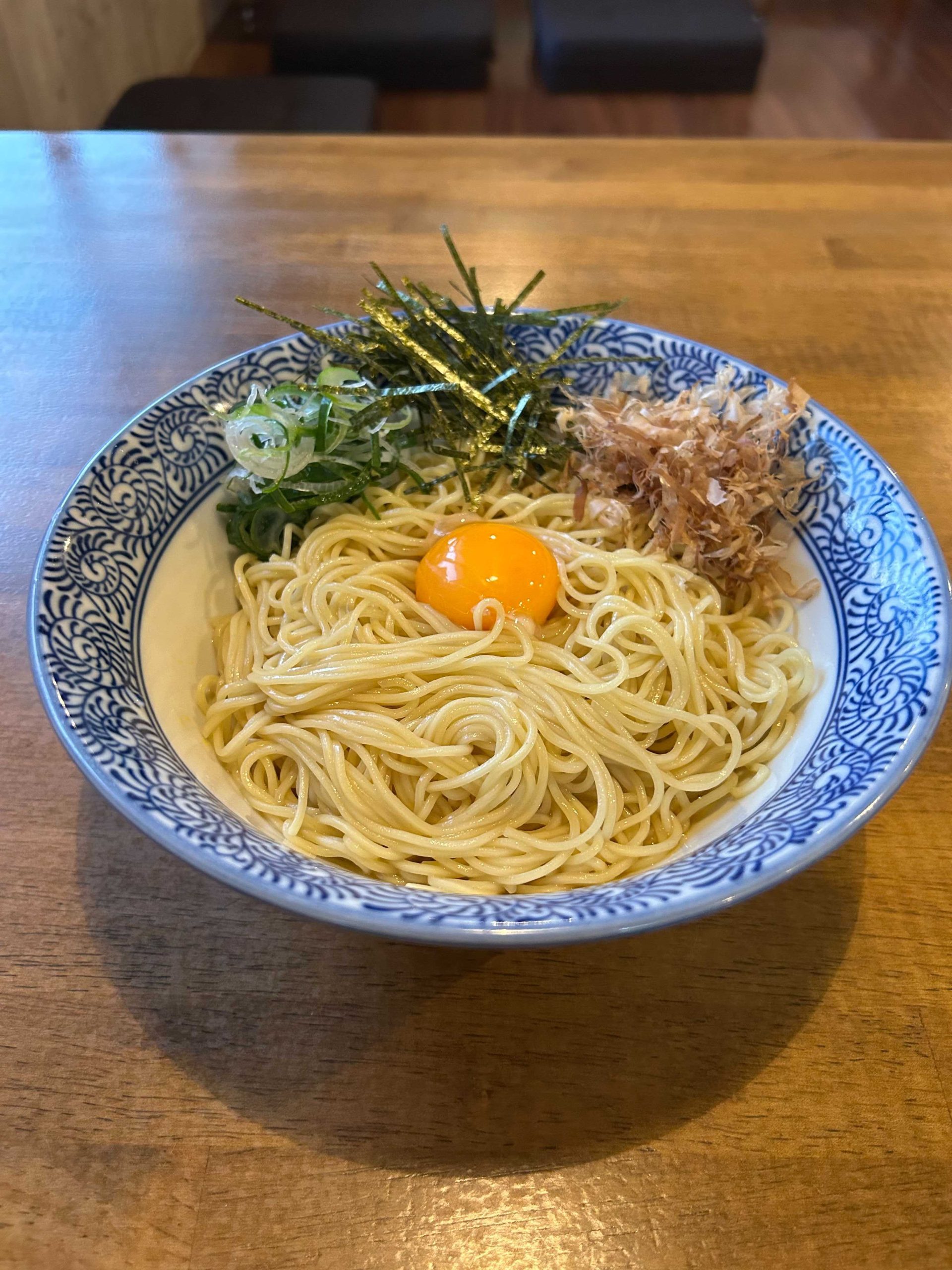 鰹の濃厚だし、金だしベースの卵かけまぜそば